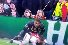 Voetballer redt tegenstander tijdens strijd tussen aartsrivalen