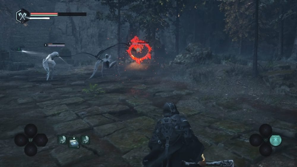 Het vechtsysteem van Hell is Us maakt een positieve eerste indruk. Je vecht dus enkel tegen de voorgenoemde monsters en die lijken in eerste instantie in veel verschillende vormen te komen. Daarnaast maakt dit spel gebruik van Nioh’s beroemde ‘Ki Pulse’-mechaniek. Kort nadat je een combo hebt uitgevoerd zie je een ring om Rémi heen. Als je op dat moment op de juiste knop drukt herstel je zowel HP als stamina. Als je tussendoor door een vijand wordt geraakt verschijnt die ring niet. Deze mechaniek is relatief simpel, maar het geeft het vechtsysteem net als in Nioh een lekker agressief ritme.