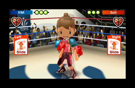 De besturing is per sport anders, maar komt redelijk op hetzelfde neer. Elke hand heeft ongeveer de helft van het onderste scherm van je 3DS tot zijn beschikking. Wil je tijdens het boksen een linkse directe stoot uitdelen, dan geef je een rechte streep naar voren op de linkerhelft. Wil je een rechtse hoek uitdelen, dan geef je een horizontale veeg op het rechtse gedeelte. Verdedigen, iets wat eigenlijk helemaal niet hoeft, kun je eventueel doen door een stylus in het midden stil te houden.