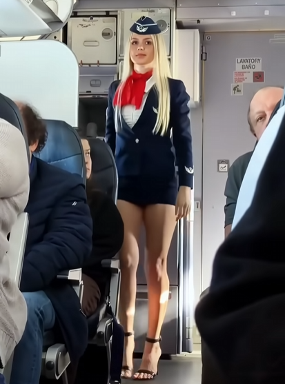 Deze stewardess (geen idee of ze echt stewardess is overigens) trekt nogal bekijks. Zou jij kijken? Iets zeggen? En wat vind je van de reacties van de diverse dames en heren?