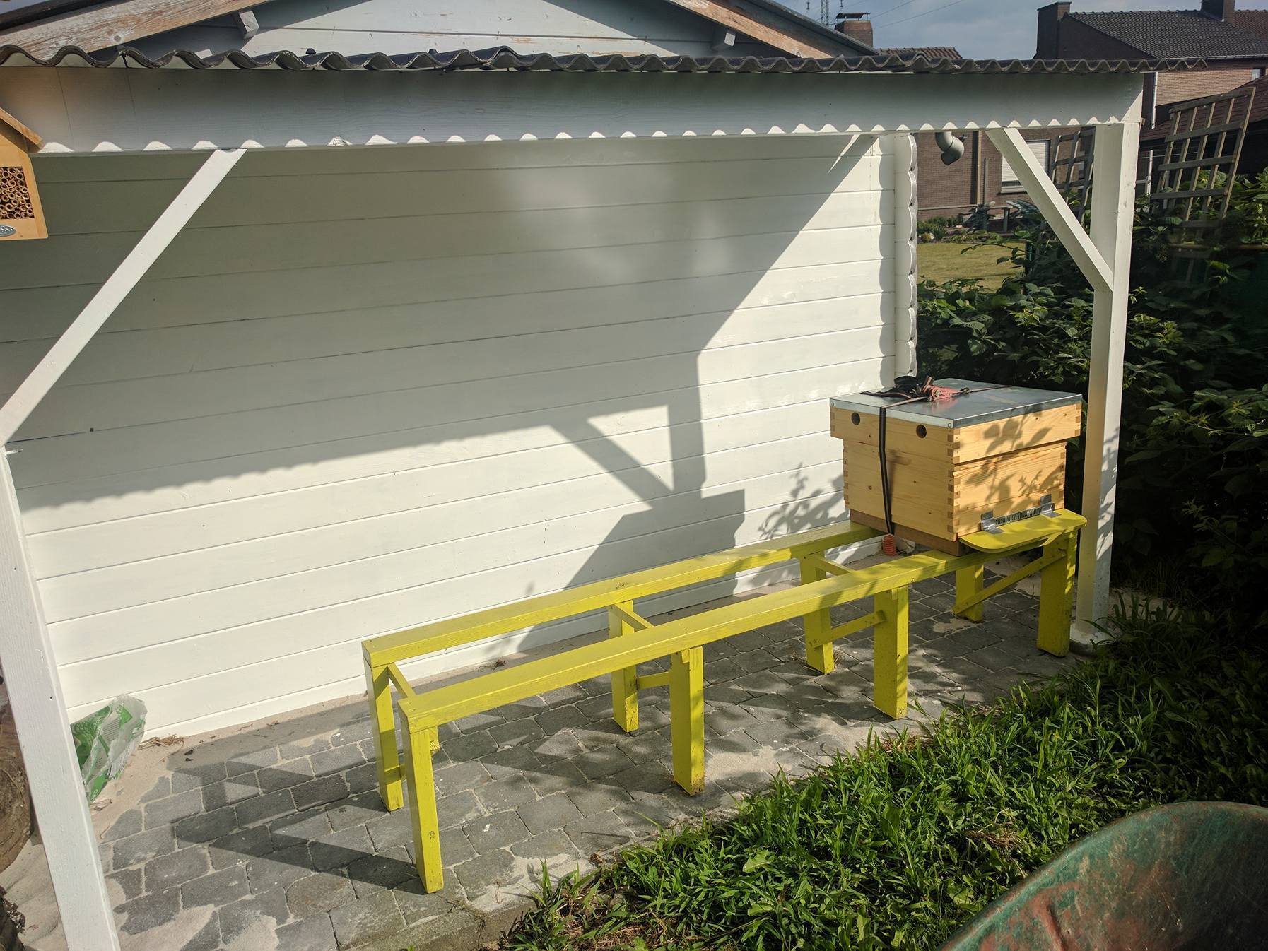 Geïnspireerd door de bijenactie en met imkers in zijn omgeving, is FOK!'er Floris inmiddels ook gaan imkeren. Hieronder vind je daarom wat plaatjes terug van zijn blije bijen (hij heeft nu twee kasten met in één kast een volk, dat hij opkweekt om volgend jaar daadwerkelijk honing mee te maken).